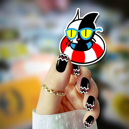 Cool Kitty in a Floating Tube - Odd Carl Vinyl Sticker